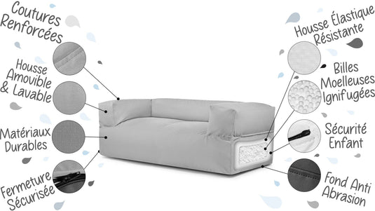- Prêt à l'emploi : prérempli de billes de polystyrène ignifugé pour une sécurité optimale.