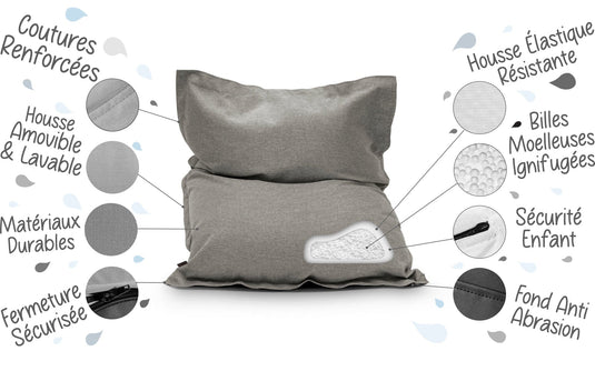 - Remplissage avec des flocons de mousse compactés pour un soutien et un confort parfaits.