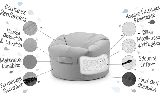 - Prêt à l'emploi : rempli de billes de polystyrène ignifugées pour un confort immédiat.
